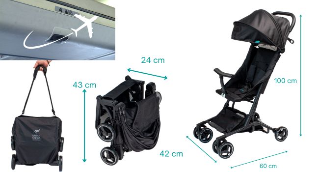 Urban Kanga Bandicoot Passeggino da Viaggio Leggero per Aereo fino a 25 kg (Nero) : Prima infanzia