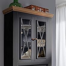 Informazioni su questo articolo Dietro le 2 ante in vetro trasparente si possono mettere stoviglie, bicchieri e decorazioni nella giusta luce, in 2 cassetti c'è spazio per posate, tovaglioli e altri piccoli oggetti. Inoltre, 2 grandi scomparti dietro le porte in legno offrono spazio per riporre oggetti. La corona color rovere e i manici in rovere garantiscono un ottimo contrasto con il pino massiccio grigio cerato. La vetrina, con dimensioni del prodotto di 109 x 214 x 42 cm e 3 ampi scomparti dietro la porta in vetro e 2 ampi scomparti dietro la porta in legno, offre spazio sufficiente per riporre oggetti Per una facile installazione sono incluse istruzioni di montaggio illustrate (lingua italiana non garantita). Il modello Oslo convince grazie all'accogliente effetto rustico › Visualizza altri dettagli prodotto Informazioni su questo articolo Dietro le 2 ante in vetro trasparente si possono mettere stoviglie, bicchieri e decorazioni nella giusta luce, in 2 cassetti c'è spazio per posate, tovaglioli e altri piccoli oggetti. Inoltre, 2 grandi scomparti dietro le porte in legno offrono spazio per riporre oggetti. La corona color rovere e i manici in rovere garantiscono un ottimo contrasto con il pino massiccio grigio cerato. La vetrina, con dimensioni del prodotto di 109 x 214 x 42 cm e 3 ampi scomparti dietro la porta in vetro e 2 ampi scomparti dietro la porta in legno, offre spazio sufficiente per riporre oggetti Per una facile installazione sono incluse istruzioni di montaggio illustrate (lingua italiana non garantita). Il modello Oslo convince grazie all'accogliente effetto rustico › Visualizza altri dettagli prodotto Product details