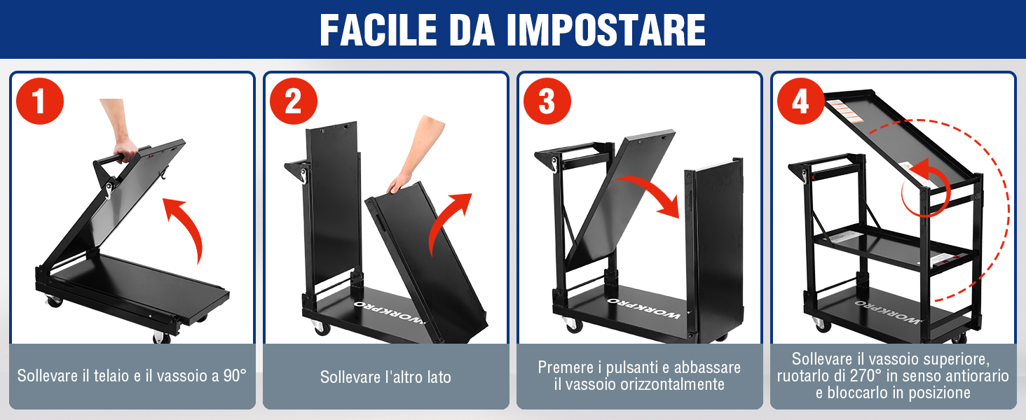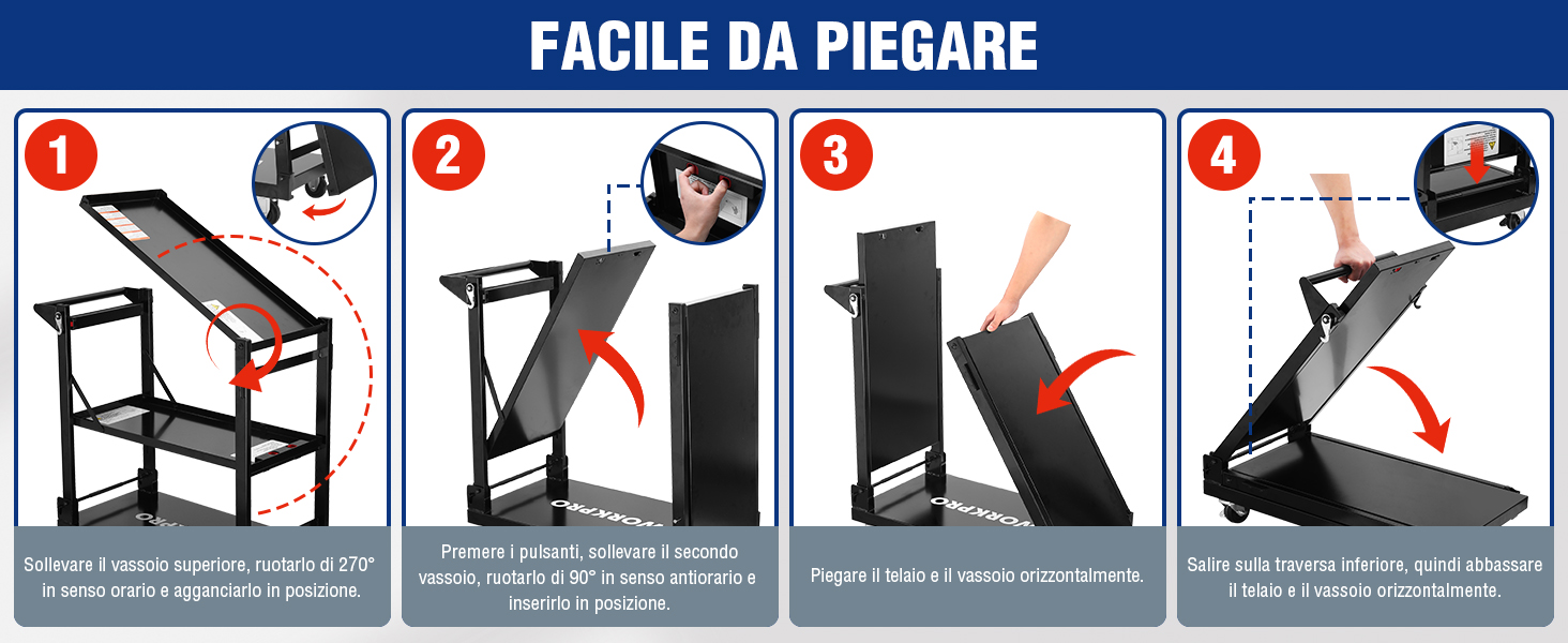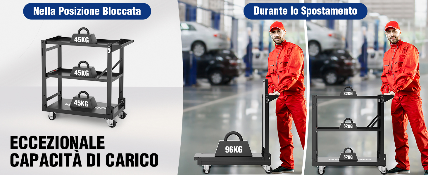 [Design 3 in 1]: Il design innovativo del carrello WORKPRO consente di utilizzarlo come carrello a piattaforma, carrello a due ripiani e può anche essere trasformato in un carrello a tre ripiani. A seconda delle esigenze reali, può essere rapidamente convertito in diverse forme per soddisfare una vasta gamma di utilizzi in casa, in magazzino e nel trasporto. [Chiusura conveniente]: Il carrello adotta un design di chiusura semplice, che può essere piegato in pochi passaggi, con una dimensione compatta di 82*43*32 cm, molto adatta per essere riposto in garage, magazzini o spazi piccoli in casa. È facile da conservare e trasportare. [Capacità di carico di 135 kg]: Il carrello ha una capacità di carico fino a 45 kg per ripiano e una capacità di carico totale fino a 135 kg, soddisfacendo le esigenze di sollevamento di carichi pesanti. Inoltre, il carrello è dotato di ruote in PP di alta qualità da 3 pollici, lisce e resistenti all'usura, e con una funzione di freno, può essere parcheggiato stabilmente. [Ampio campo di applicazione]: Questo carrello non è solo adatto per l'uso domestico, come il trasporto di oggetti quotidiani e l'organizzazione del garage, ma può essere utilizzato anche in ambienti professionali come magazzini, fabbriche, uffici e persino cucine e supermercati, rendendolo un potente assistente nel lavoro e nella vita. [Materiale di alta qualità]: Il carrello è realizzato in acciaio di alta qualità, e tutte le parti metalliche sono trattate con trattamento antiruggine per garantire robustezza e durata. › Visualizza altri dettagli prodotto [Design 3 in 1]: Il design innovativo del carrello WORKPRO consente di utilizzarlo come carrello a piattaforma, carrello a due ripiani e può anche essere trasformato in un carrello a tre ripiani. A seconda delle esigenze reali, può essere rapidamente convertito in diverse forme per soddisfare una vasta gamma di utilizzi in casa, in magazzino e nel trasporto. [Chiusura conveniente]: Il carrello adotta un design di chiusura semplice, che può essere piegato in pochi passaggi, con una dimensione compatta di 82*43*32 cm, molto adatta per essere riposto in garage, magazzini o spazi piccoli in casa. È facile da conservare e trasportare. [Capacità di carico di 135 kg]: Il carrello ha una capacità di carico fino a 45 kg per ripiano e una capacità di carico totale fino a 135 kg, soddisfacendo le esigenze di sollevamento di carichi pesanti. Inoltre, il carrello è dotato di ruote in PP di alta qualità da 3 pollici, lisce e resistenti all'usura, e con una funzione di freno, può essere parcheggiato stabilmente. [Ampio campo di applicazione]: Questo carrello non è solo adatto per l'uso domestico, come il trasporto di oggetti quotidiani e l'organizzazione del garage, ma può essere utilizzato anche in ambienti professionali come magazzini, fabbriche, uffici e persino cucine e supermercati, rendendolo un potente assistente nel lavoro e nella vita. [Materiale di alta qualità]: Il carrello è realizzato in acciaio di alta qualità, e tutte le parti metalliche sono trattate con trattamento antiruggine per garantire robustezza e durata. › Visualizza altri dettagli prodotto Product details