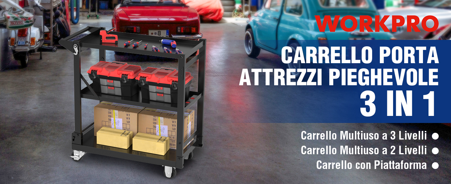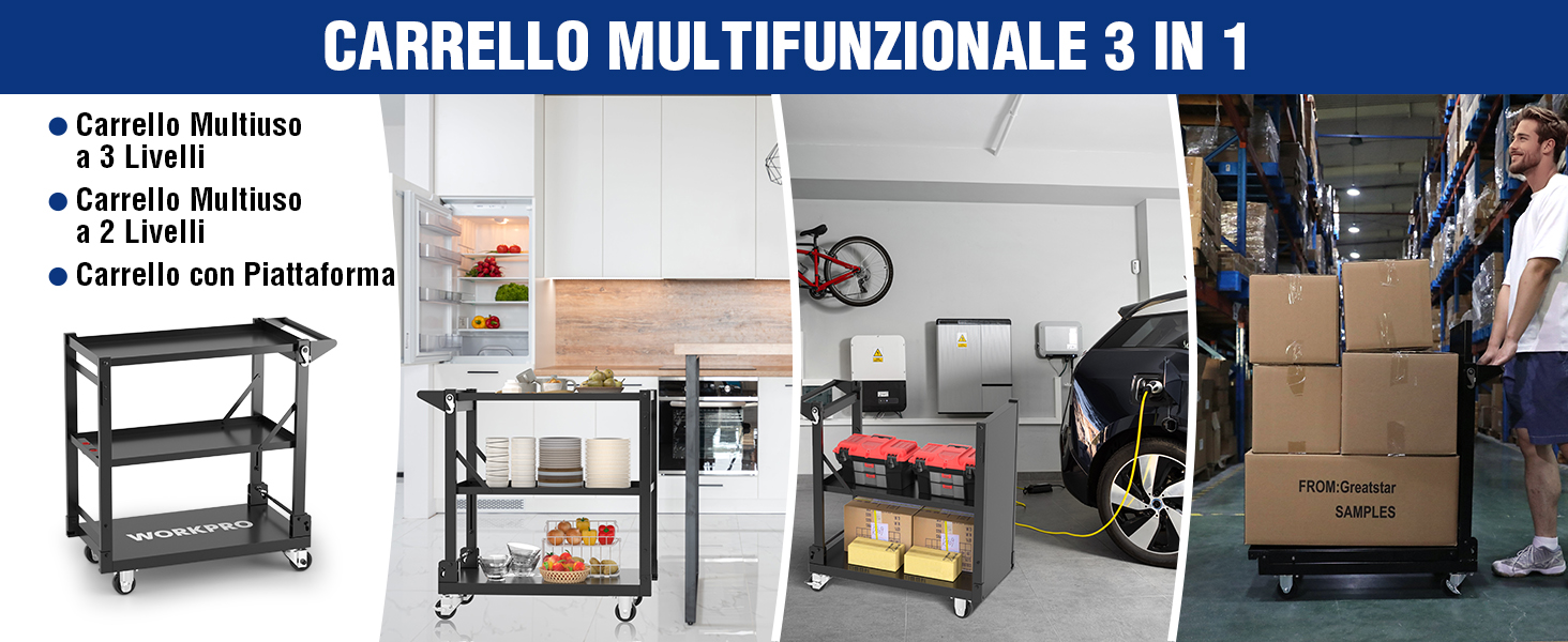 WORKPRO 3 IN 1 carrello pieghevole con ruote portatutto e 3 Ripiani, carrello porta attrezzi multifunzione carico di 135 kg con 4 Ruote (2 con Freno) Ideale per garage, magazzini, uffici, cucine : Amazon.it: Giardino e giardinaggio