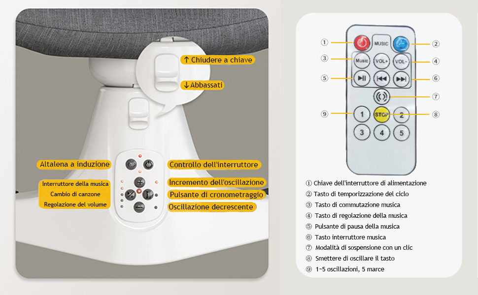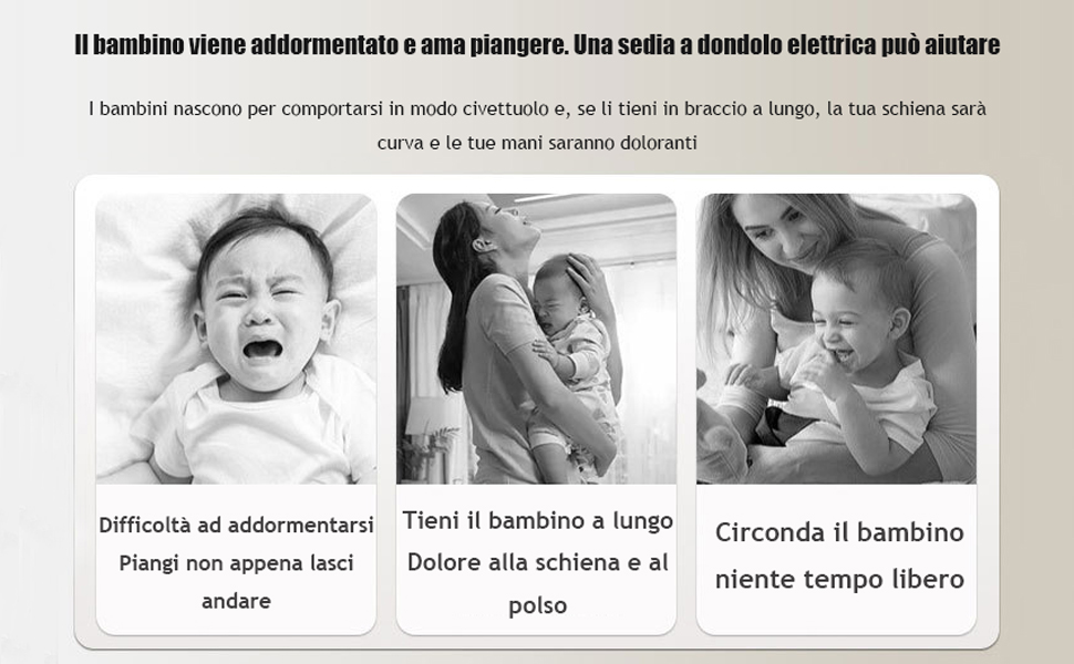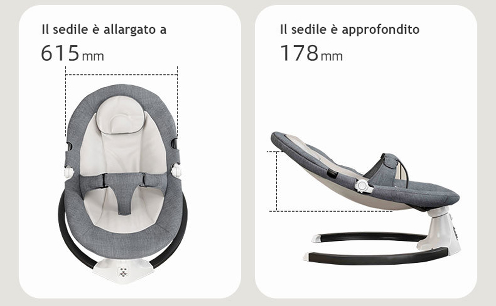 Informazioni su questo articolo Doppia Modalità Di Controllo Sdraietta Neonati:Il Pulsante Avanzato E Il Telecomando Rendono La Sdraietta Neonati Elettrica Wrneaoch Flessibile E Semplice Da Usare: è Possibile Controllare L'Interruttore Della Musica, L'Angolo Di Oscillazione, Il Timer E Il Funzionamento Del Volume. Per Risparmiare Tempo Ed Energia, è Possibile Impostare Tre Tempi Di Oscillazione (8, 15 O 30 Minuti) E Il Dispositivo Smetterà Automaticamente Di Funzionare Una Volta Trascorso Il Tempo Impostato Lettore Musicale Bluetooth:Questa Sdraietta Neonati 0-18 Kg Ha 10 Ninne Nanne Preimpostate E La Possibilità Di Connettere Il Telefono Tramite Bluetooth Per Riprodurre Musica O Storie E Offrire Così Al Bambino Momenti Di Pace O Gioia 5 Velocità Di Oscillazione:Altalena Neonato Elettrica Con 5 Angoli Di Oscillazione Regolabili, Che Vanno Da 18° A 31°. Il Livello Di Oscillazione Tra Ogni Ampiezza è Progettato Per Essere Una Differenza Molto Graduale E Imita Il Movimento Naturale Da Lato A Lato Che I Bambini Amano Imbracatura A 3 Punti Più Sicurezza:Dondolo Neonati Elettrico Con Cintura Di Sicurezza A 3 Punti Regolabile In Base Alle Dimensioni Del Bambino. Il Cuscino Regolabile Della Sdraietta Neonato Aiuta Anche A Mantenere Il Bambino Sicuro E Comodo. Il Sdraietta Neonato Dondolo Elettrica è Progettato Per Bambini Dai Primi Giorni Di Vita Fino A 18 Kg Tessuto Morbido E Base Stabile:Cuscinetti E Guanciale Super Morbidi In Tessuto Ecologico, Traspiranti, Ideali Per I Neonati, Staccabili E Lavabili In Lavatrice. Il Dondolo Per Neonati Wrneaoch Ha Una Base Resistente E Impugnature Antiscivolo Che Forniscono Stabilità. Dotato Di Zanzariera Ombreggiante Alimentata Da Una Spina, Il Dondolo Neonato è Ideale Per I Più Piccini. è Un'Ottima Idea Regalo Per Il Baby Show › Visualizza altri dettagli prodotto Informazioni su questo articolo Doppia Modalità Di Controllo Sdraietta Neonati:Il Pulsante Avanzato E Il Telecomando Rendono La Sdraietta Neonati Elettrica Wrneaoch Flessibile E Semplice Da Usare: è Possibile Controllare L'Interruttore Della Musica, L'Angolo Di Oscillazione, Il Timer E Il Funzionamento Del Volume. Per Risparmiare Tempo Ed Energia, è Possibile Impostare Tre Tempi Di Oscillazione (8, 15 O 30 Minuti) E Il Dispositivo Smetterà Automaticamente Di Funzionare Una Volta Trascorso Il Tempo Impostato Lettore Musicale Bluetooth:Questa Sdraietta Neonati 0-18 Kg Ha 10 Ninne Nanne Preimpostate E La Possibilità Di Connettere Il Telefono Tramite Bluetooth Per Riprodurre Musica O Storie E Offrire Così Al Bambino Momenti Di Pace O Gioia 5 Velocità Di Oscillazione:Altalena Neonato Elettrica Con 5 Angoli Di Oscillazione Regolabili, Che Vanno Da 18° A 31°. Il Livello Di Oscillazione Tra Ogni Ampiezza è Progettato Per Essere Una Differenza Molto Graduale E Imita Il Movimento Naturale Da Lato A Lato Che I Bambini Amano Imbracatura A 3 Punti Più Sicurezza:Dondolo Neonati Elettrico Con Cintura Di Sicurezza A 3 Punti Regolabile In Base Alle Dimensioni Del Bambino. Il Cuscino Regolabile Della Sdraietta Neonato Aiuta Anche A Mantenere Il Bambino Sicuro E Comodo. Il Sdraietta Neonato Dondolo Elettrica è Progettato Per Bambini Dai Primi Giorni Di Vita Fino A 18 Kg Tessuto Morbido E Base Stabile:Cuscinetti E Guanciale Super Morbidi In Tessuto Ecologico, Traspiranti, Ideali Per I Neonati, Staccabili E Lavabili In Lavatrice. Il Dondolo Per Neonati Wrneaoch Ha Una Base Resistente E Impugnature Antiscivolo Che Forniscono Stabilità. Dotato Di Zanzariera Ombreggiante Alimentata Da Una Spina, Il Dondolo Neonato è Ideale Per I Più Piccini. è Un'Ottima Idea Regalo Per Il Baby Show › Visualizza altri dettagli prodotto Product details