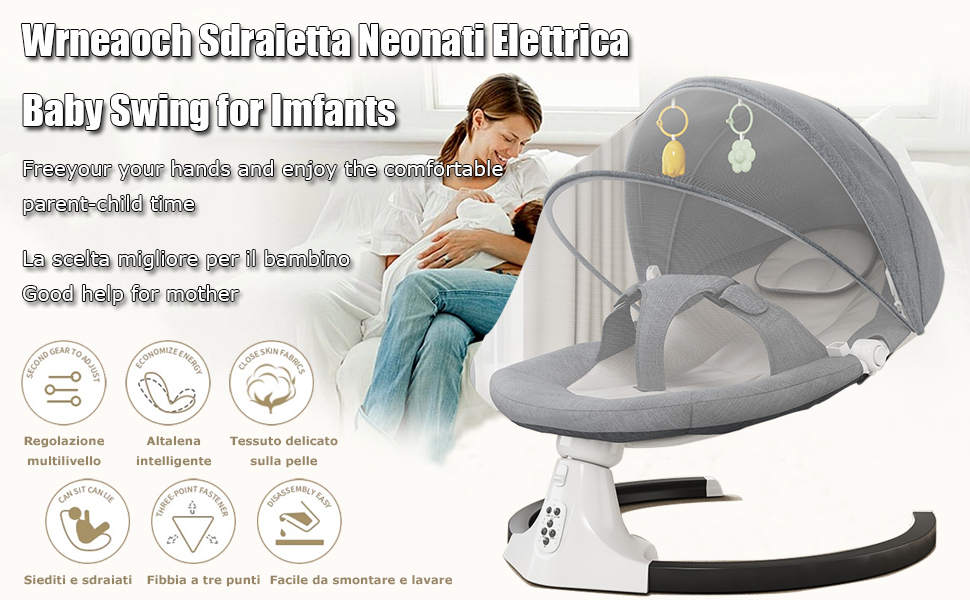 Wrneaoch 2 in 1 Sdraietta Neonati Elettrica Dondolo Neonati Elettrico con Telecomando e Bluetooth, Sdraietta Neonati 0 18 Kg con Cintura di Sicurezza a 3 Punti per Bambino 0 3 Anni : Amazon.it: Prima infanzia