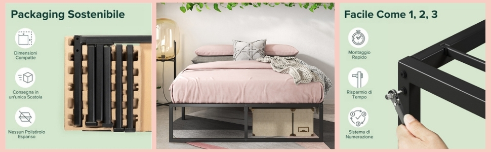 Zinus Heidi Letto 160x190 cm Struttura letto 31cm di altezza con contenitore sotto il letto Struttura letto a piattaforma in metallo con testiera e pediera Nero : Casa e cucina